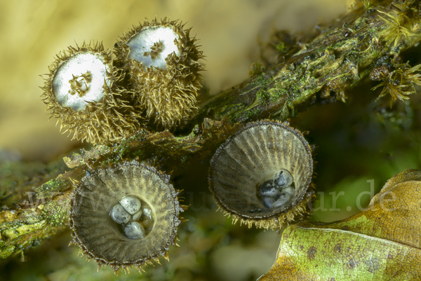 weitere Stichworte: Cyathus hirsutus, Cyathus striatus, Fluted bird's nest, Fungi, Fungus, Gestreifter teuerling, Pilze, Striegeliger teuerling, Teuerling