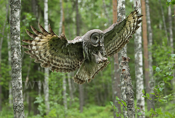 Bartkauz, Birds, Eulen, Female, Finnland, Flight, Flug, Great grey owl, Owls, Strigiformes, Strix nebulosa, Vögel, Weibchen