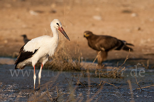 weitere Stichworte: Accipitriformes, Adler, Aquila nipalensis, Birds, Ciconia ciconia, Ciconiiformes, Eagle, Greifvögel, Oman, Raptors, Schreitvögel, Steppe eagle, Steppenadler, Storchenvögel, Vögel, Weißstorch, White stork