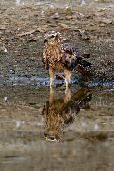 weitere Stichworte: Accipitriformes, Bad, Bathe, Birds, Circus pygargus, Female, Greifvögel, High size, Hochformat, Immat., Mirror, Montagu`s harrier, Raptors, Spain, Spanien, Spiegelbild, Tränke, Vögel, Watering place, Weibchen, Wiesenweihe