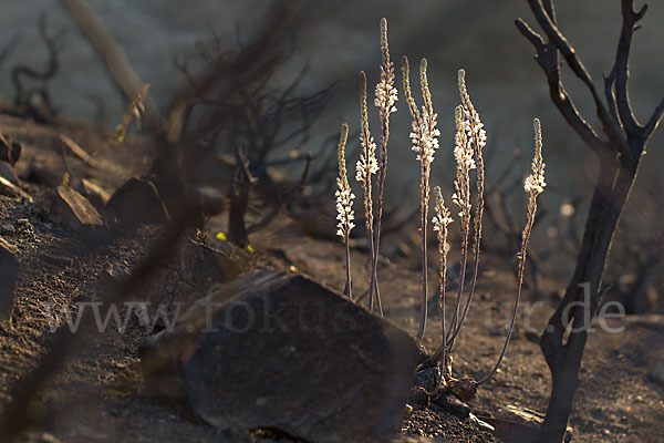Asparagaceae, Charybdis maritima, Drimia maritima, Flora, Forest fire, Meerzwiebel, Pflanzen, Plants, Spain, Spanien, Spargelgewächse, Waldbrand, Weiße meerzwiebel