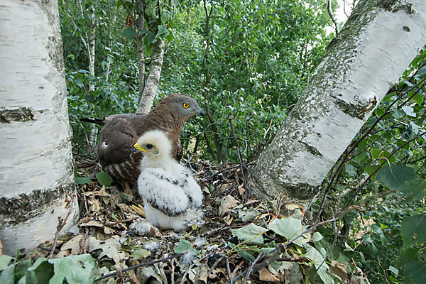 weitere Stichworte: Accipitriformes, Birds, Fütterung, Greifvögel, Honey buzzard, Horst, Juv., Juvenil, Nest, Pernis apivorus, Raptors, Vögel, Wespenbussard