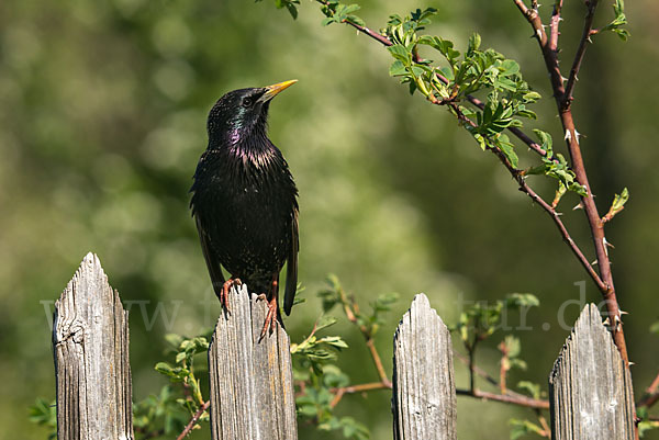 weitere Stichworte: Birds, Garden, Garden fence, Garten, Gartenzaun, Passeri, Singvögel, Songbirds, Star, Starling, Sturnus vulgaris, Vögel