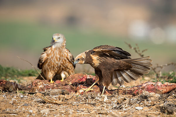 weitere Stichworte: Accipitriformes, Birds, Circus aeruginosus, Greifvögel, Juv., Juvenil, Marsh harrier, Milvus milvus, Raptors, Red kite, Rohrweihe, Roter milan, Rotmilan, Spain, Spanien, Vögel